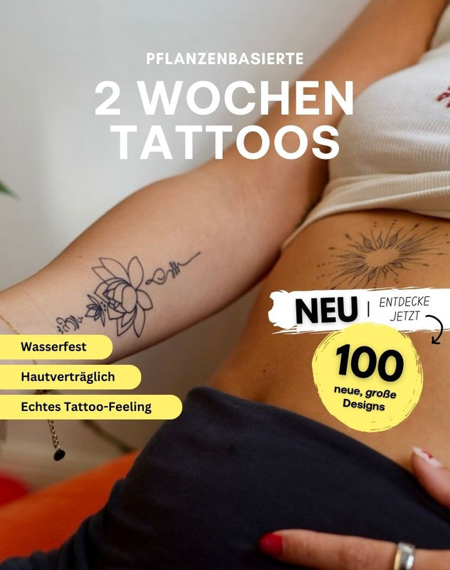 Uns ist es wichtig, dass unsere Tattoos natürlich sind. Deshalb haben wir eine 100% vegane Tinte entwickelt, die nach der EU-Kosmetikverordnung zertifiziert und hautverträglich ist.