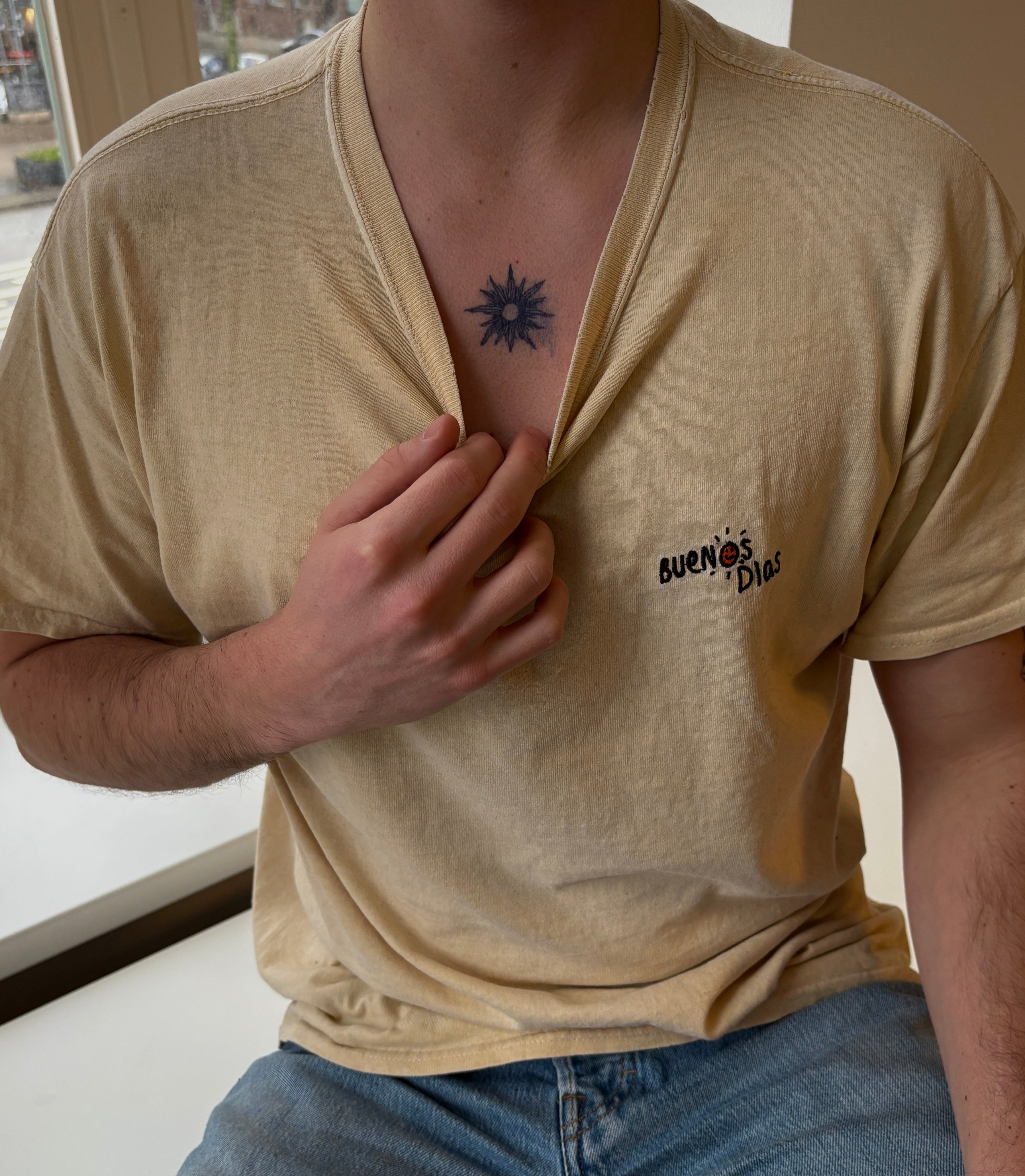 Das liegt daran, dass der Hintergrund deines Uploads durchsichtig ist. Dein Tattoo wird nur dein Motiv in schwarzer Farbe umfassen (ohne gelbe Tropfen). Die gelben Tropfen sind das Design unseres Trägerpapiers und kein Bestandteil deines Tattoos.