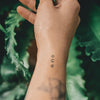 Unsere natürliche Inkster Tinte zieht in die erste Hautschicht ein und reagiert mit natürlichen Verbindungen in der Haut und der Luft, wodurch sie sich schwarz/blau färbt.