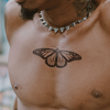 Unsere natürliche Inkster Tinte zieht in die erste Hautschicht ein und reagiert mit natürlichen Verbindungen in der Haut und der Luft, wodurch sie sich schwarz/blau färbt.